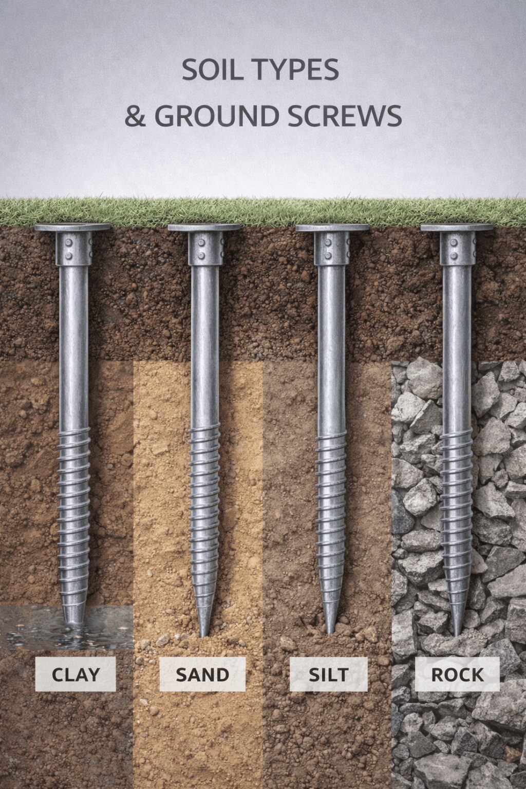 Clay is workable for screw foundations when depth and engagement are treated correctly.